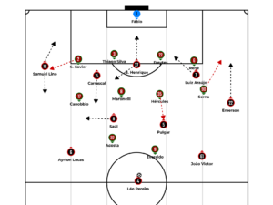In a moment in football where set pieces become increasingly decisive, it is important to have strategies both to attack and defend throw-ins. Fluminense scored twice, one of them indirectly after a throw-in, where the focus and positioning of the players, especially Serna, were key to exploiting a poor back pass by João Vitor and a ridiculous control error by Rossi. The other was a tactical masterpiece from a throw-in.