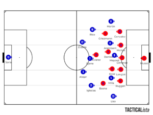 Atlético’s in possession set up against Getafe’s 4-1-4-1.